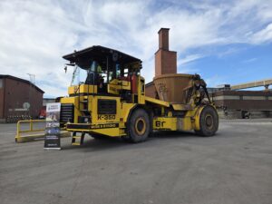 Kuparikuonan kuljetusajoneuvoon tutustuminen on myös aina vaikuttavaa. Virtuaalilasien avulla osallistujat pääsivät kokemaan, millaiset näkymät kuljettajalla hytistä on.